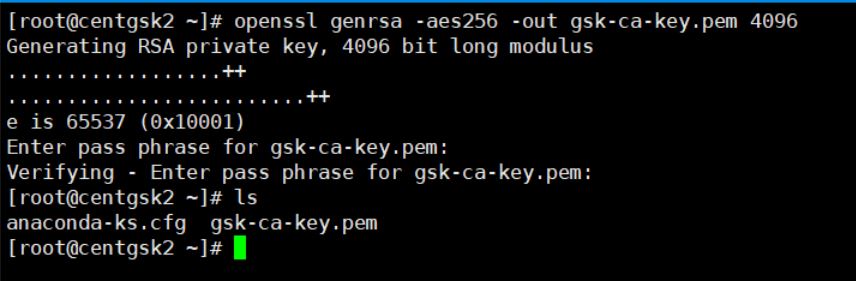 openssl genrsa -aes256 -out gsk-ca-key.pem 4096